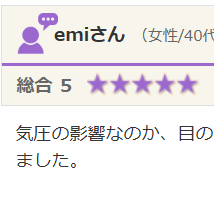 気圧の影響なのか、目の奥が痛くて辛かったのですが、治療していただいて、目がスッキリしました。身体全体も血流が良くなり楽になりました。